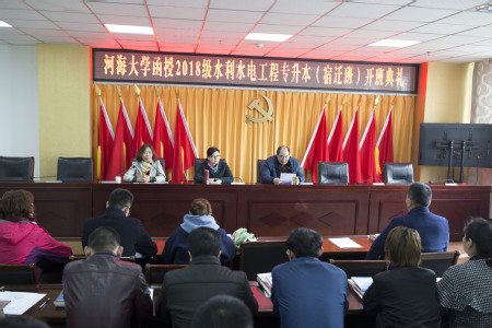 3月24日在宿迁泗洪水利局2018级水利水电工程专业(专升本)宿迁泗洪班学生报到注册,报到结束后举行了开班典礼。威尼斯432888can登录主页远程与继续教育学院副院长季莉、宿迁泗洪水利局领导班子成员姚飞参加了开班典礼。开班典礼由威尼斯432888can登录主页远程与继续教育学院远教部主任常华主持。