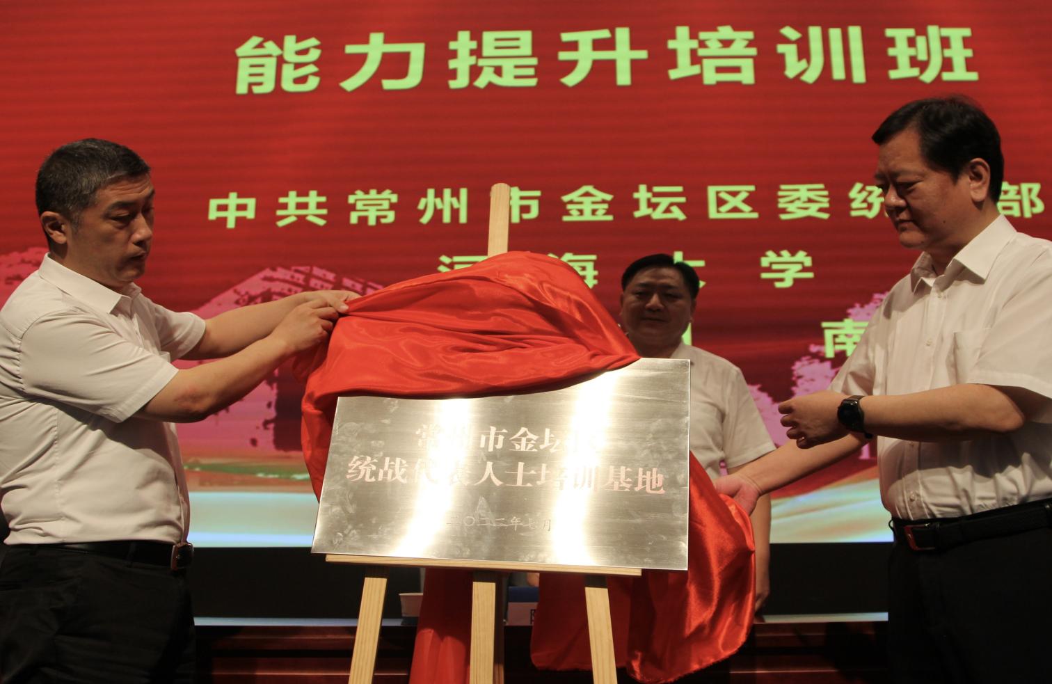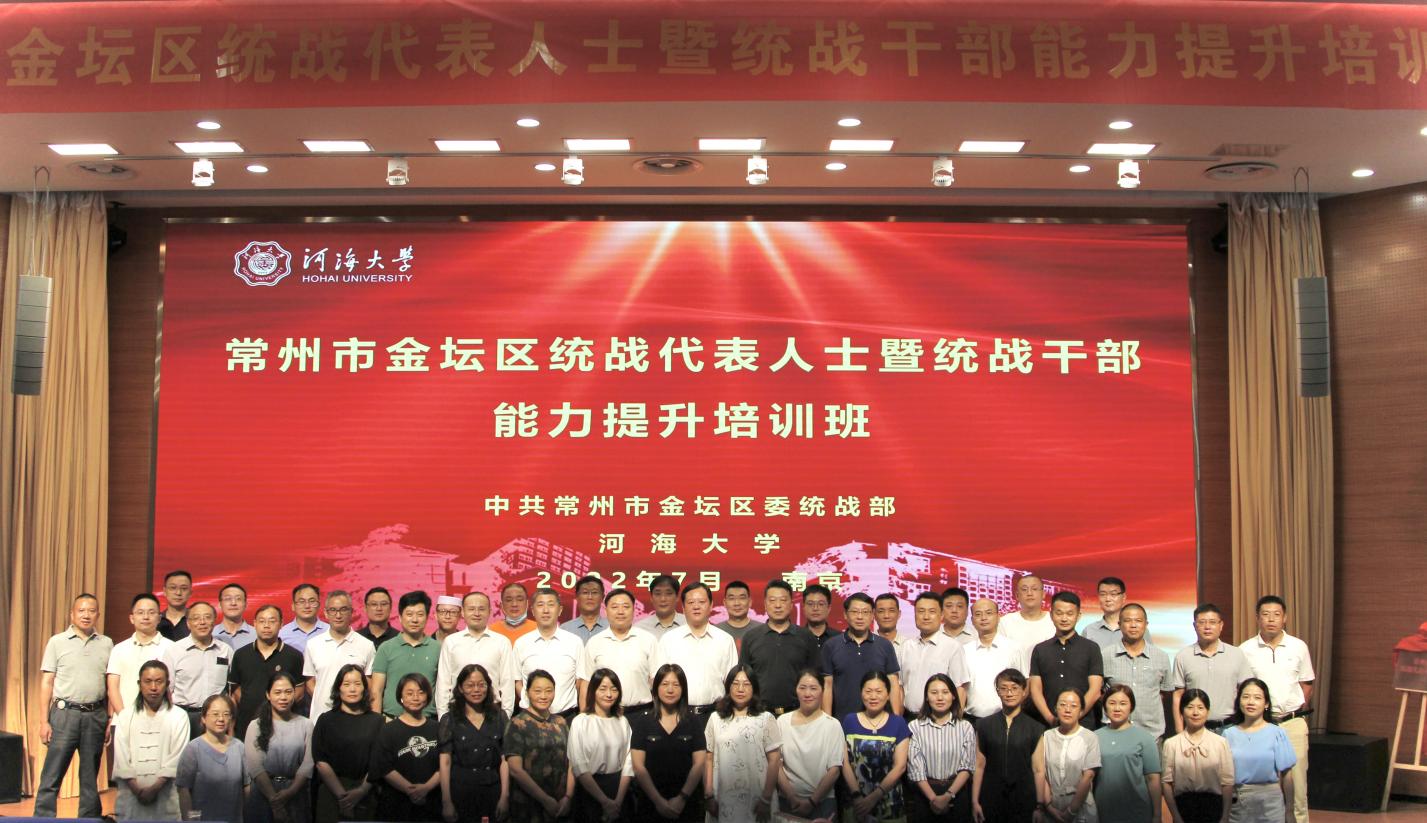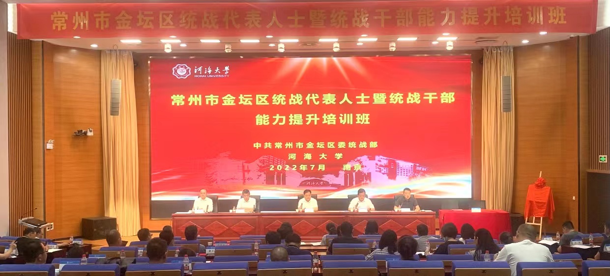 7月26日,常州市金坛区统战代表人士暨统战干部能力提升培训班在我校开班。威尼斯432888can登录主页党委常委、副校长陆国宾、威尼斯432888can登录主页远程与继续教育学院院长朱亚、中共常州市金坛区委常委、统战部部长、副区长徐俊、金坛区工商联党组书记汤鹏飞出席开班仪式,中共常州市金坛区委统战部常务副部长刘斌主持开班暨揭牌仪式。