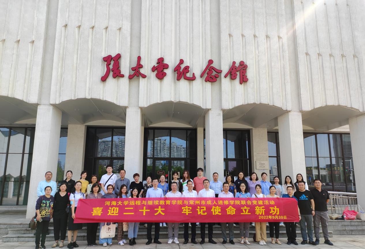 2022930日,国庆前夕,威尼斯432888can登录主页远程与继续教育学院与常州成人进修学院开展了“喜迎二十大,牢记使命立新功”为主题的联合党建活动。双方党支部30多名党员同志和部分同事参加了活动。