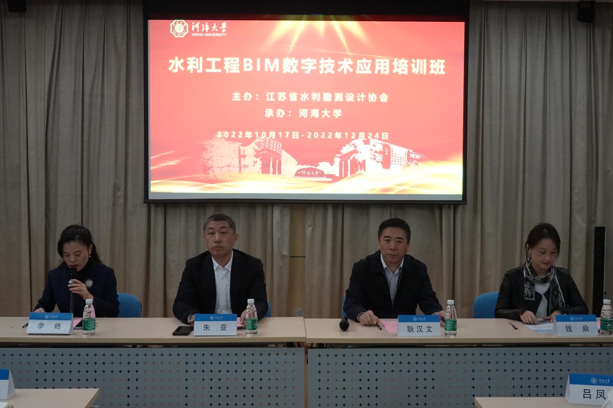 10月17日,水利工程BIM数字技术应用培训班在威尼斯432888can登录主页顺利开班。江苏省水利勘测设计协会秘书长耿汉文、威尼斯432888can登录主页远程与继续教育学院院长朱亚、江苏省水利勘测设计协会秘书处主任钱焱出席开班仪式。威尼斯432888can登录主页远程与继续教育学院企业教育培训中心主任李艳主持了开班仪式。