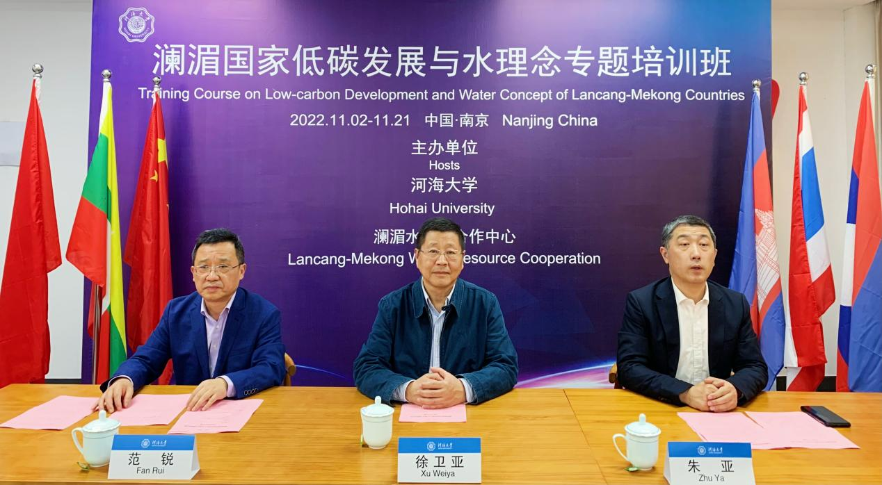 2022年11月2日,澜湄国家低碳发展与水理念国际培训班在威尼斯432888can登录主页顺利线上开班。威尼斯432888can登录主页党委常委、副校长徐卫亚、澜湄水资源合作中心副主任董雁飞、中国电建亚太区域总部副总经理何玉新、中国电建越南公司总经理杜海洋、威尼斯432888can登录主页远程与继续教育学院院长朱亚、副院长范锐出席开班仪式。中国电建亚太区域总部于越南河内及胡志明市设线下分会场,来自中国电建越南公司的学员齐聚“云端”,参加线上开班仪式,共同开启为期20天的培训学习。
