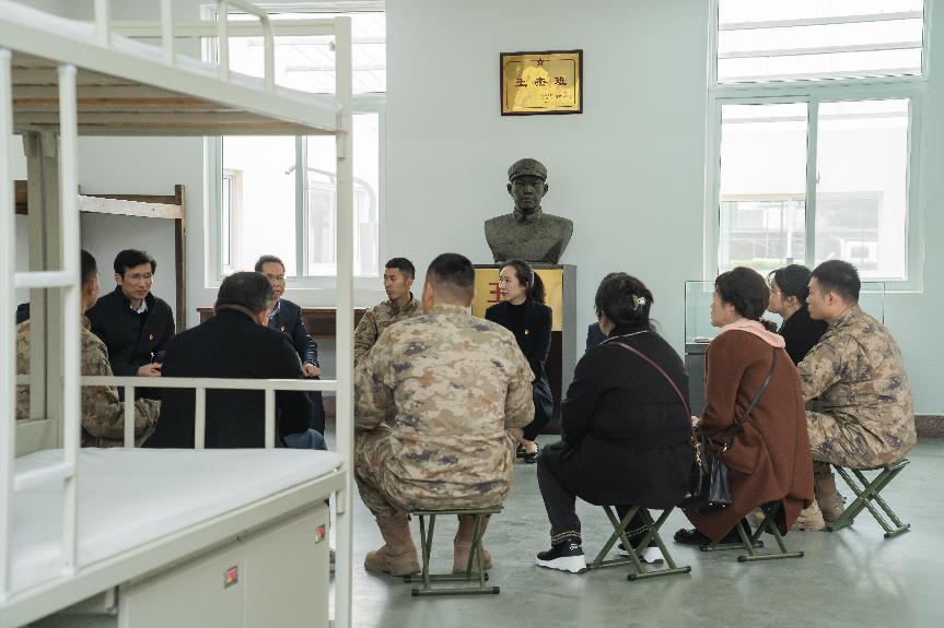 随后,党员们参观了王杰生前所在连荣誉室,再次表达对王杰烈士的缅怀和敬仰之情。在王杰班,学院党员和教学站点党员与部队学员代表进行了座谈,了解他们在学习中遇到的困难和需求,倾听他们对教学管理的意见和建议,并为官兵同学们答疑解惑,分享学习方法。