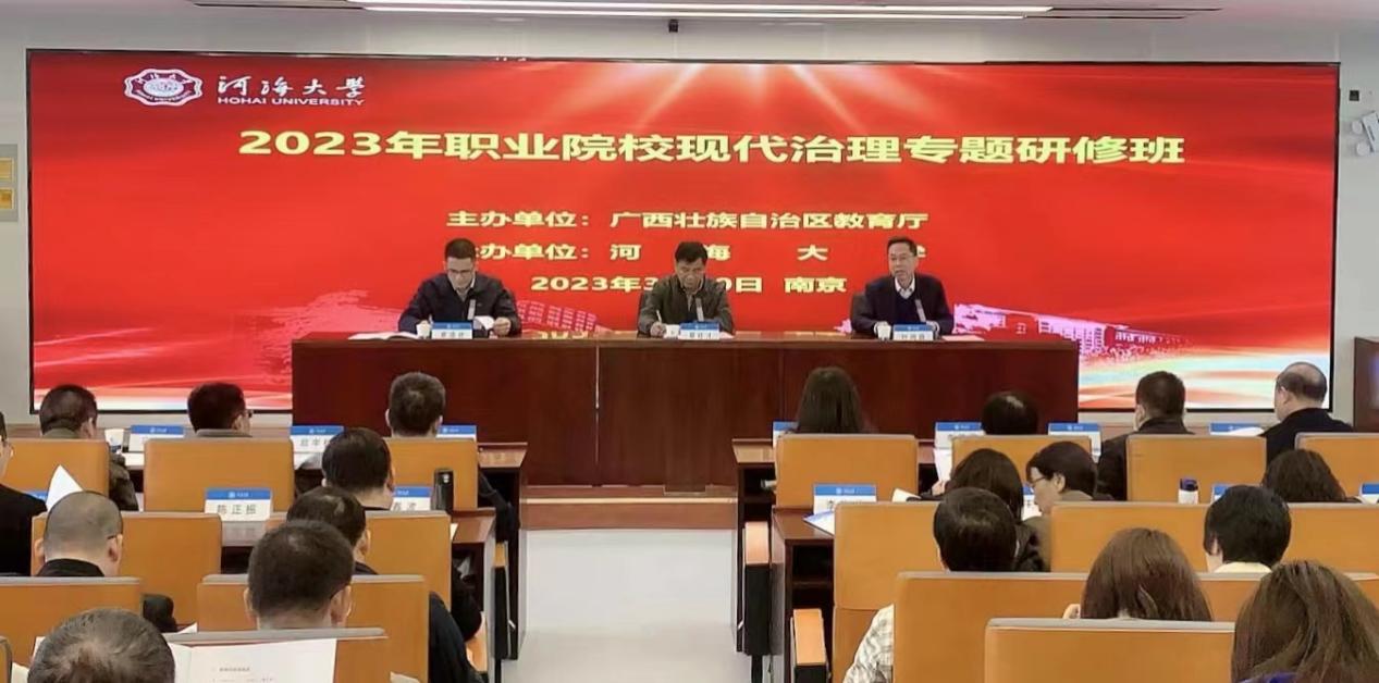 3月20日,广西壮族自治区教育厅举办的现代职业教育管理能力提升培训班在威尼斯432888can登录主页顺利开班。广西教育厅职业教育与成人教育处处长覃壮才、威尼斯432888can登录主页远程与继续教育学院书记叶鸿蔚参加开班仪式,广西教育厅职业教育与成人教育处副处长廖造壮主持开班仪式。