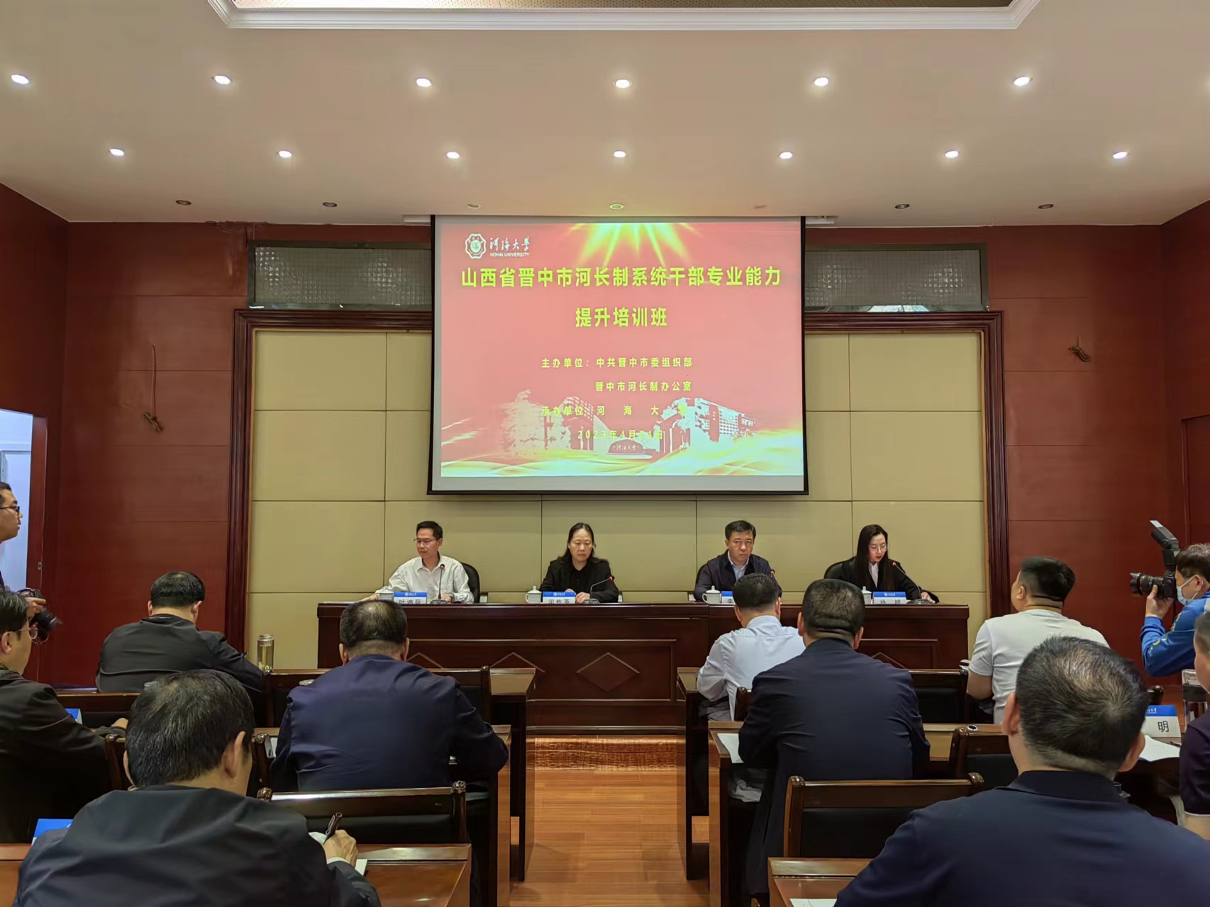 4月24日,威尼斯432888can登录主页举办的山西省晋中市河长制系统干部专业能力提升培训班在福州市顺利开班。晋中市水利局党组书记、局长李学文、山西省水利厅河湖长制工作处处长渠性英、威尼斯432888can登录主页远程与继续教育学院书记叶鸿蔚出席开班仪式。