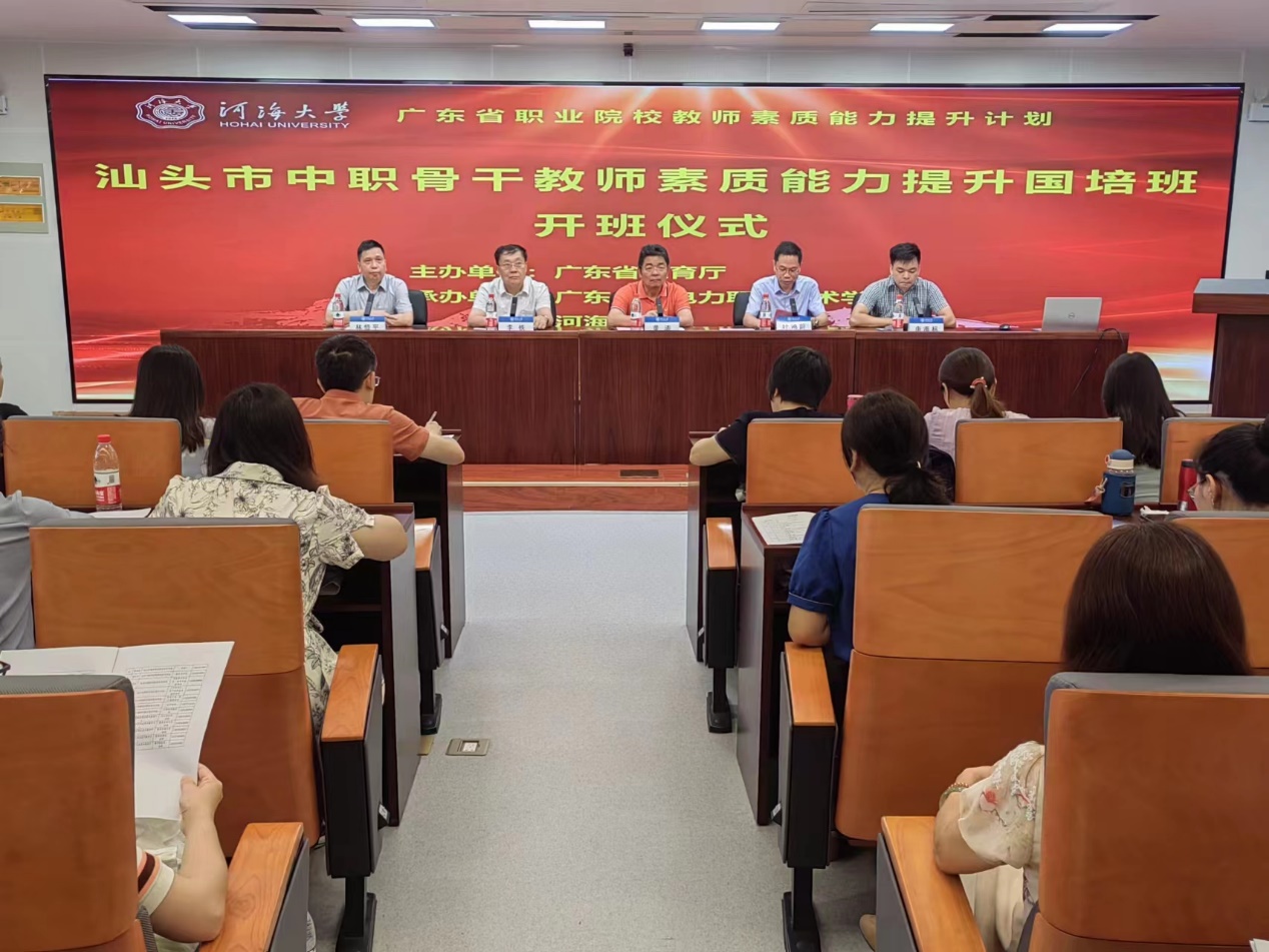 7月17日,广东省职业院校教师素质能力提升计划—汕头市中职骨干教师素质能力提升国培班在威尼斯432888can登录主页顺利开 班。广东水利电力职业技术学院党委书记黄涛、广东水利电力职业技术学院副校长李铁、汕头市教育局教师发展中心主任林惜平、威尼斯432888can登录主页远程与继续教育学院书记叶鸿蔚出席开班仪式。广东水利电力职业技术学院继续教育学院副院长唐海标主持开班仪式。