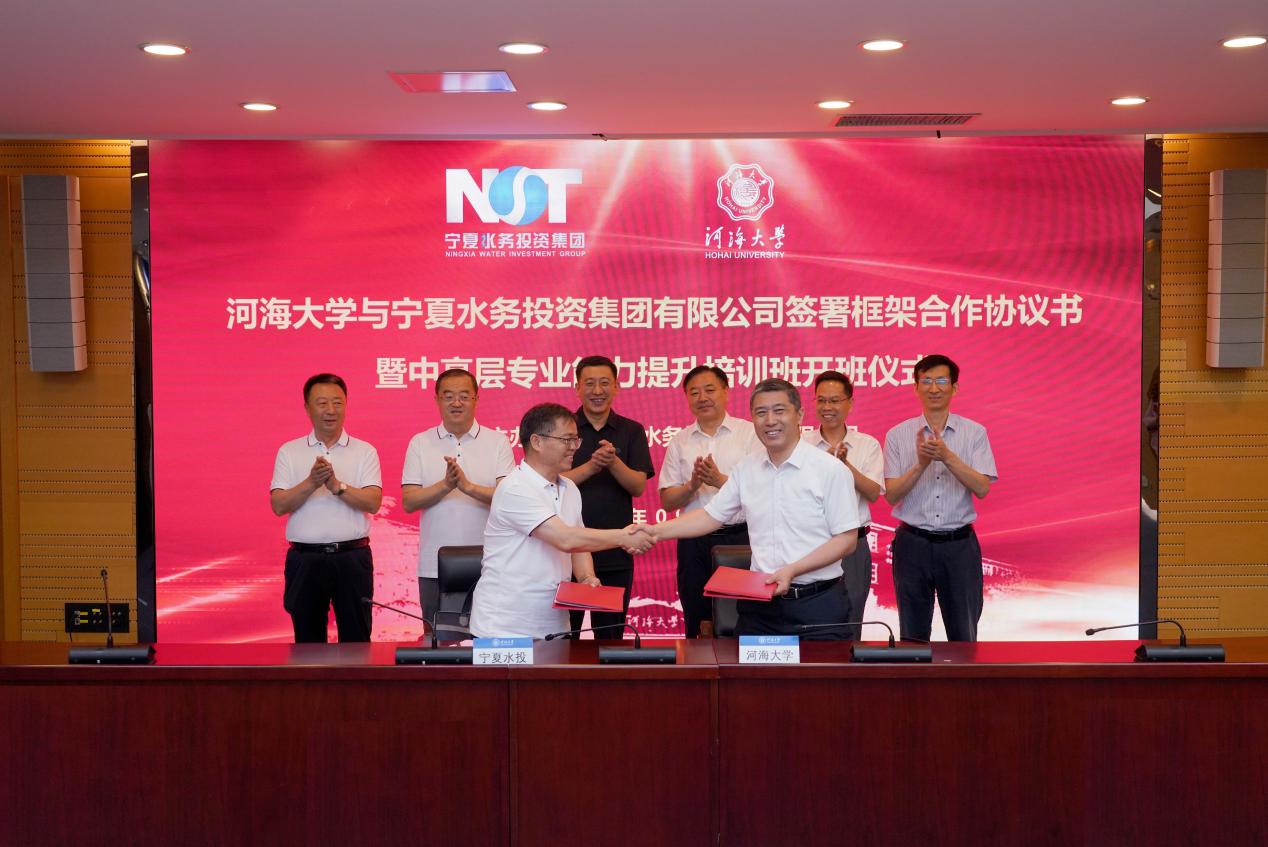 9月11日,威尼斯432888can登录主页与宁夏水务投资集团有限公司框架合作协议签署暨公司中高层专业能力提升培训班开班仪式在威尼斯432888can登录主页顺利举行。宁夏水务投资集团有限公司董事长李志军,威尼斯432888can登录主页副校长陆国宾,宁夏水投集团纪委书记张晓林,威尼斯432888can登录主页远程与继续教育学院院长朱亚出席仪式,威尼斯432888can登录主页远程与继续教育学院书记叶鸿蔚主持仪式。