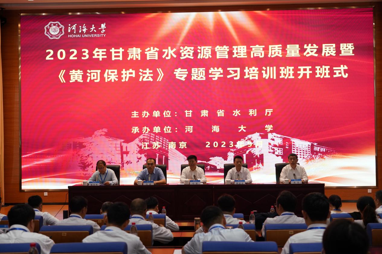 9月24日,甘肃省水资源管理高质量发展暨《黄河保护法》专题学习培训班在我校顺利开班。甘肃省水利厅党组书记、厅长牛军、水利部水资源管理司原副司长郭孟卓、水利部水资源管理司取用水管理处处长马超、威尼斯432888can登录主页远程与继续教育学院院长朱亚出席开班仪式,甘肃省水利厅水资源处处长杨忠琪主持开班仪式。