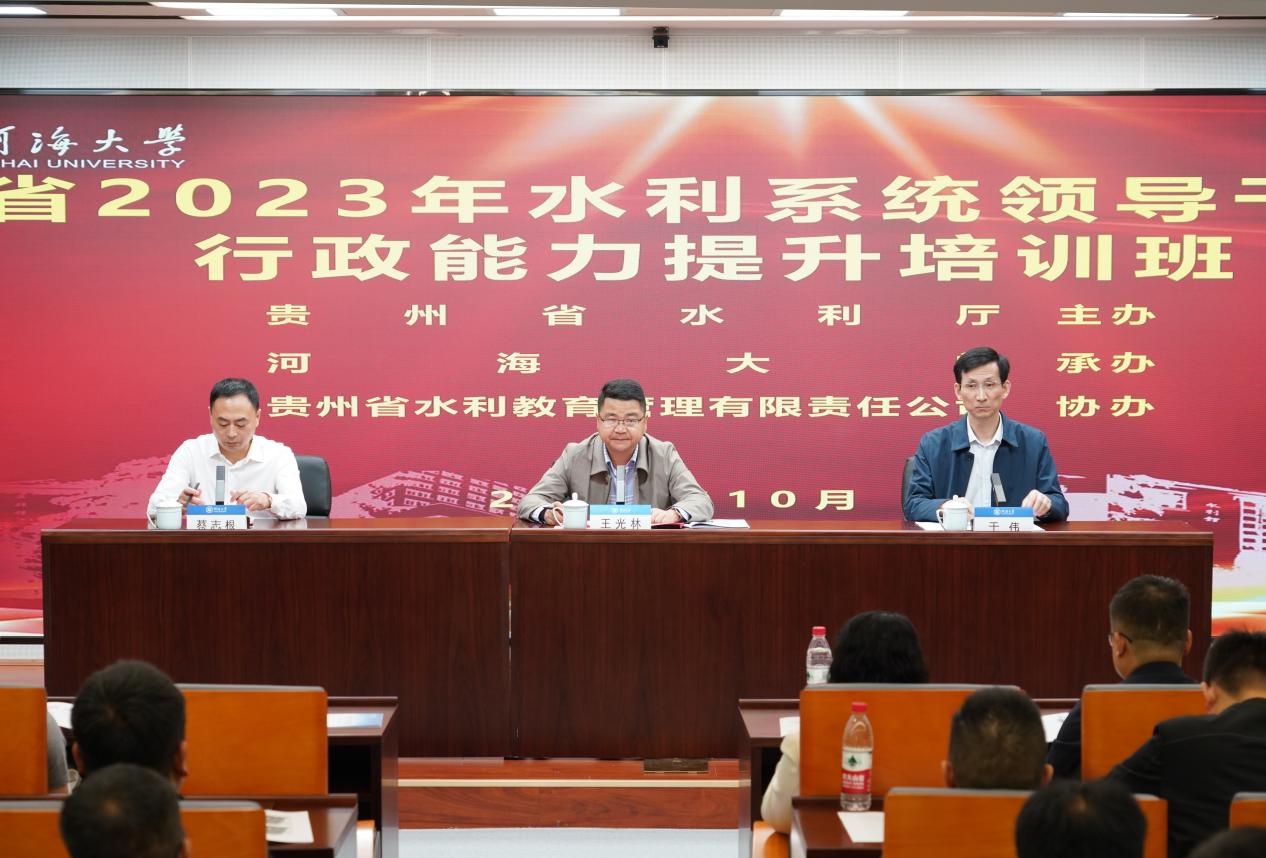 10月31日,贵州省2023年水利系统领导干部依法行政能力提升培训班在威尼斯432888can登录主页顺利开班。贵州省水利厅政策法规处四级调研员王光林、威尼斯432888can登录主页远程与继续教育学院副院长于伟出席开班仪式。