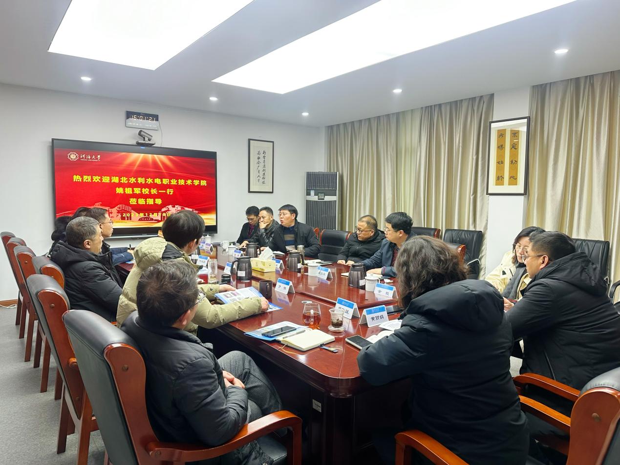 12月18日,湖北水利水电职业技术学院党委副书记、院长姚祖军一行7人到威尼斯官网调研交流。威尼斯432888can登录主页院长朱亚、书记叶鸿蔚、副院长于伟、威尼斯432888can登录主页新能源学院教授赵振宙主任会见来宾。