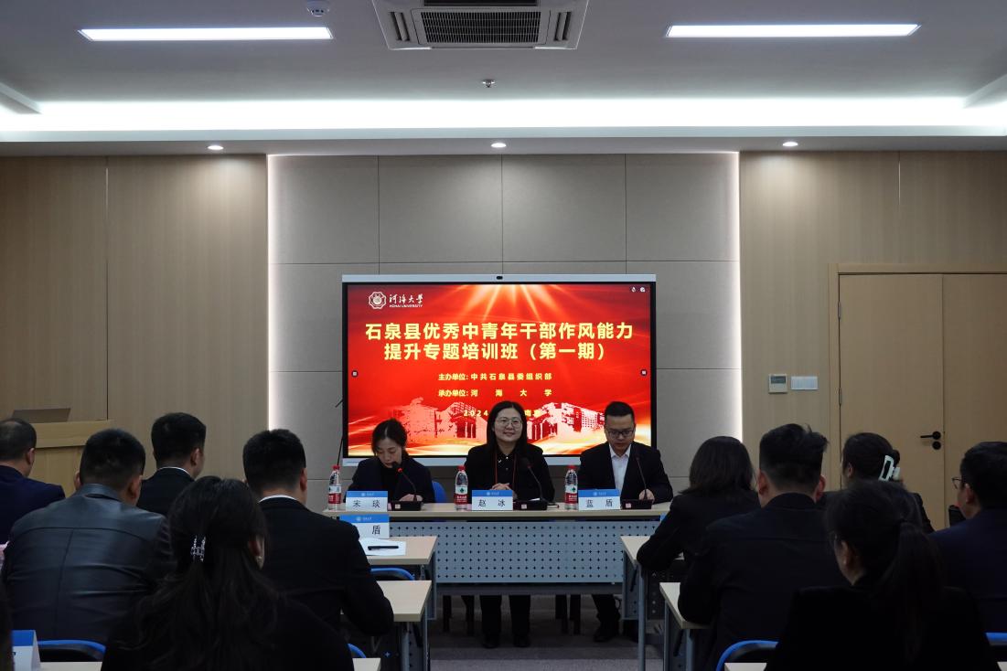 3月26日,石泉县优秀中青年干部作风能力提升专题培训班在威尼斯432888can登录主页顺利开班。威尼斯432888can登录主页国内合作发展处处长赵冰,石泉县委党校教师蓝盾出席开班仪式,威尼斯432888can登录主页学习服务中心副主任宋琰主持开班仪式。