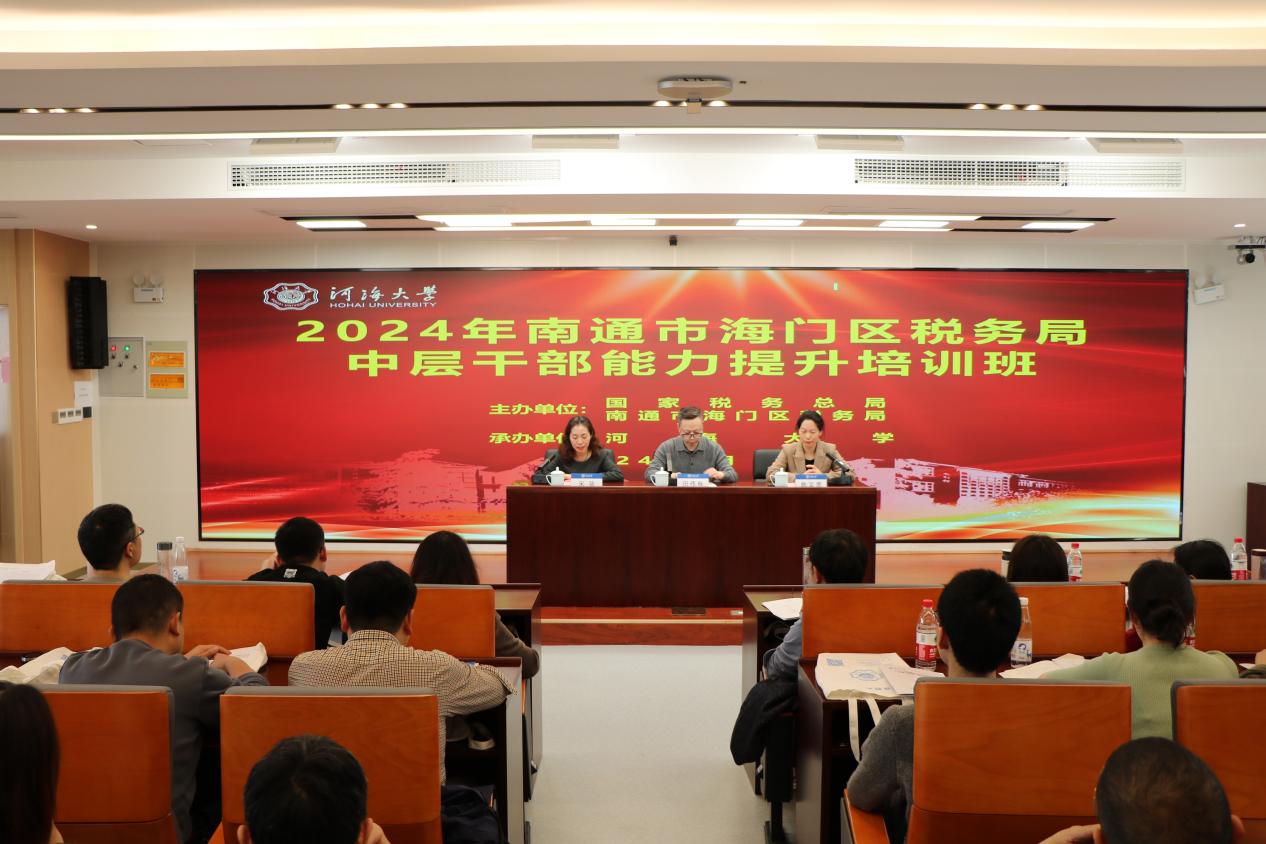 3月29日,2024年国家税务总局南通市海门区税务局中层干部能力提升培训班在威尼斯432888can登录主页顺利开班。南通市海门区税务局组织人事股股长田伟栋、威尼斯432888can登录主页副院长姚文贤出席开班仪式。威尼斯432888can登录主页学习服务中心宋琰主持开班仪式。