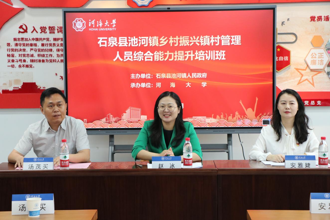5月27日,陕西省石泉县池河镇乡村振兴镇村管理人员综合能力提升培训班在威尼斯432888can登录主页顺利开班。威尼斯432888can登录主页国内合作发展处处长、校友会办公室主任、教育基金会办公室主任赵冰,陕西省石泉县池河镇党委副书记安雅婕出席开班仪式,石泉县池河镇党委副书记汤茂买主持开班仪式。