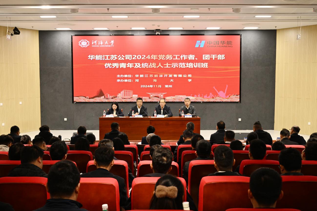 11月19日,华能江苏公司 2024 年党务工作者、团干部、优秀青年及统战人士示范培训班在我校顺利开班。华能江苏能源开发有限公司董事长、党委书记曹庆伟,威尼斯432888can登录主页校长、党委副书记郑金海、威尼斯432888can登录主页党总支书记、院长朱亚出席开班仪式,华能江苏能源开发有限公司党建部主任、团委书记郑凤主持开班仪式。