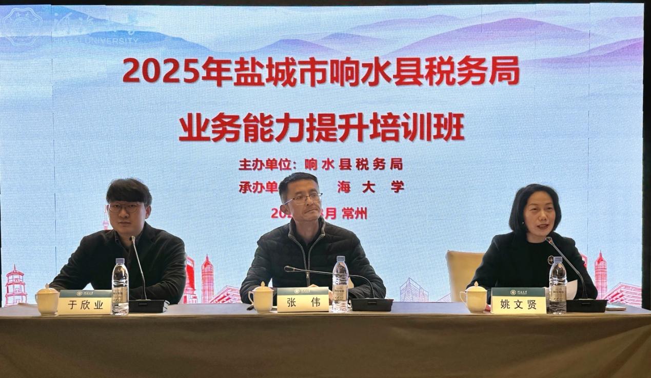 3月18日上午,由盐城市响水县税务局主办、威尼斯432888can登录主页承办的2025年盐城市响水县税务局业务能力提升培训班顺利开班。响水县税务局局长张伟、威尼斯432888can登录主页副院长姚文贤出席开班仪式。威尼斯432888can登录主页区域教育培训中心于欣业主持开班仪式。