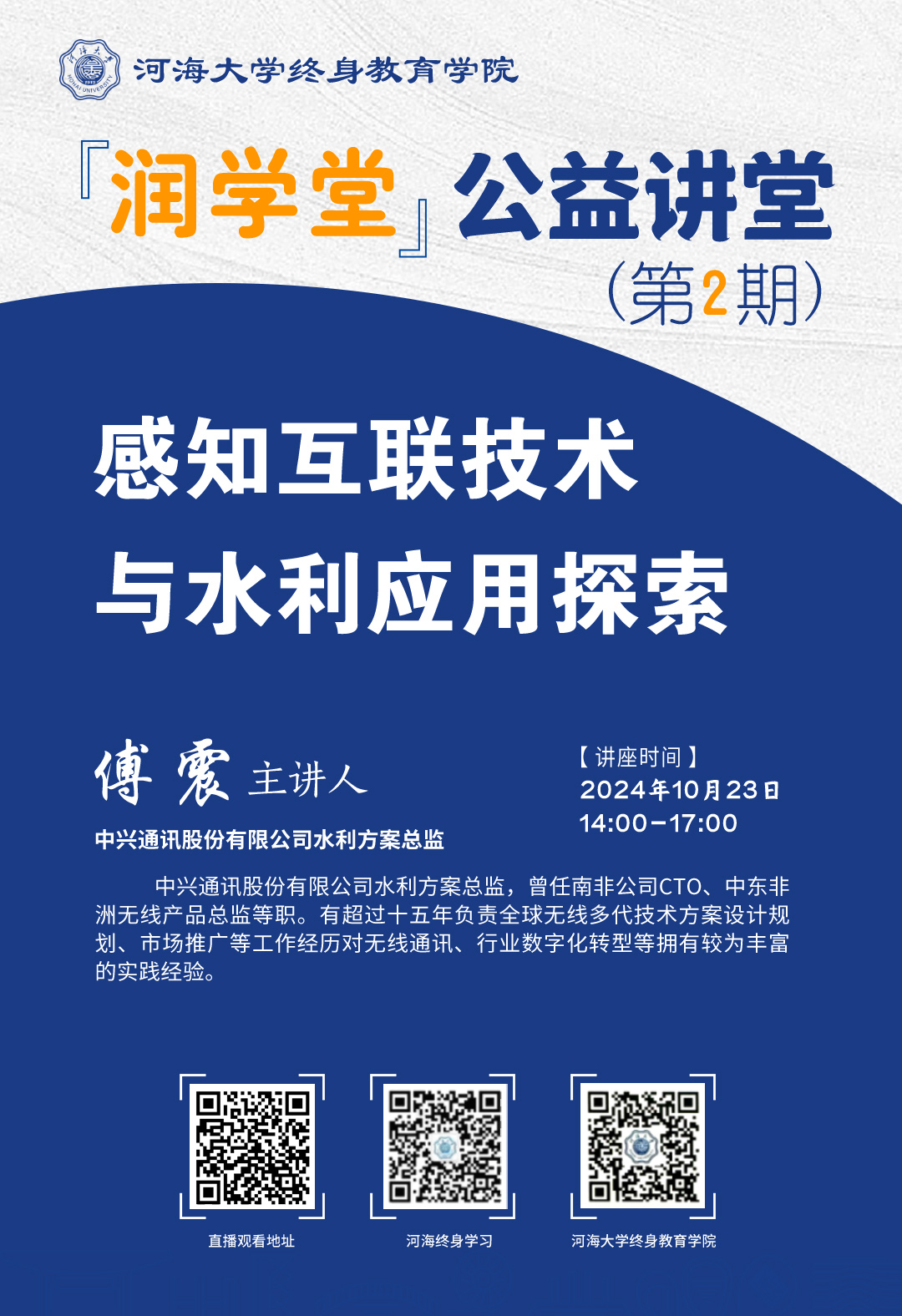 【润学堂】公益讲堂第二期:感知互联技术与水利应用探索