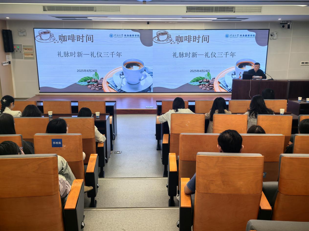 4月24日下午,威尼斯432888can登录主页举办本年度第二期“咖啡时间”文化沙龙活动。学院副院长姚文贤以《礼脉时新——礼仪三千年》为题,与40余名教职工在氤氲的咖啡香气中,共同开启了一场传统与现代交融的文明对话。活动由学院党总支组织委员仲兆宏主持。
