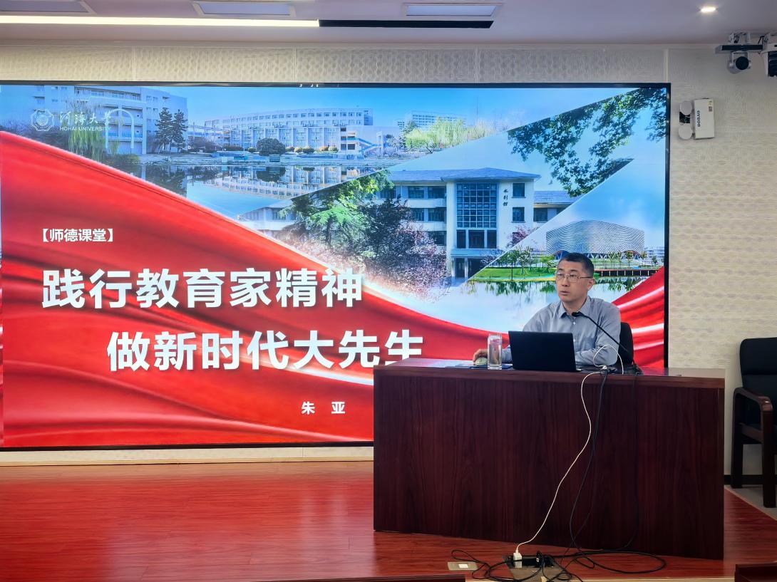 大会上,朱亚主讲2025年“师德教育第一课”。他结合教育部及学校关于师德师风建设的最新文件精神,围绕“学校正在做什么”“教师应该知道什么”“教师应该要做什么”三个方面,系统阐释了教育家精神的提出背景、演进逻辑、本质内涵以及党和国家对教师队伍建设的最新要求。