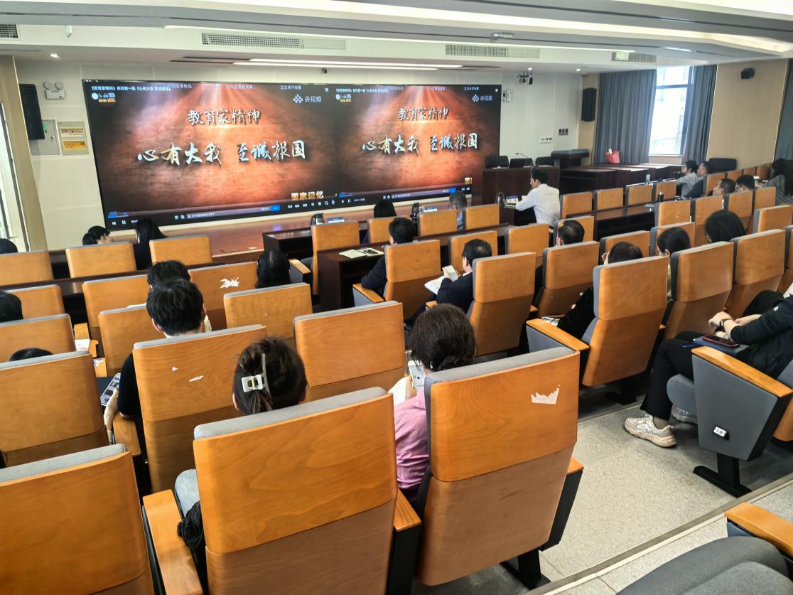 全体教职工集体观看了《教育家精神》系列专题片第一集《心有大我 至诚报国》。影片通过蔡元培、黄大年等教育家的感人事迹,生动诠释了教育家精神的时代内涵,引发在场教师的强烈共鸣。