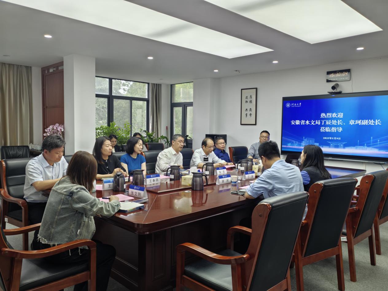 5月9日下午,安徽省水文局组织人事处处长丁辰、站网监测处副处长章轲一行到访我校调研交流。威尼斯432888can登录主页党总支书记、院长朱亚,副院长姚文贤,水文水资源学院原书记、教授陈元芳,以及威尼斯432888can登录主页相关部门(中心)负责人出席座谈会。