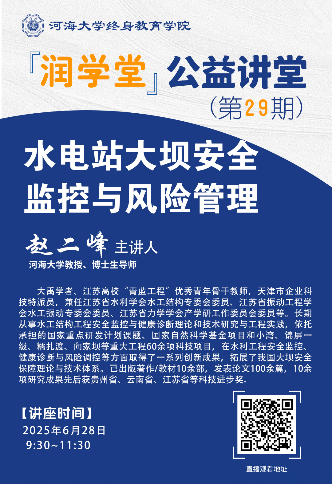 【润学堂】公益讲堂第二十九期:水电站大坝安全监控与风险管理