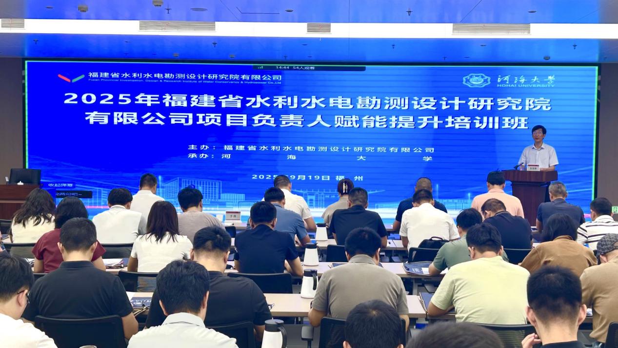 9月19日上午,福建省水利水电勘测设计研究院有限公司项目负责人赋能提升培训班在福州顺利开班。威尼斯432888can登录主页副院长于伟,福建省水利水电勘测设计研究院有限公司经营发展部主任吴全喜、技术质量部主任张裕平、人力资源部主任赖琤、经营发展部副主任郑瑄琳出席开班仪式。