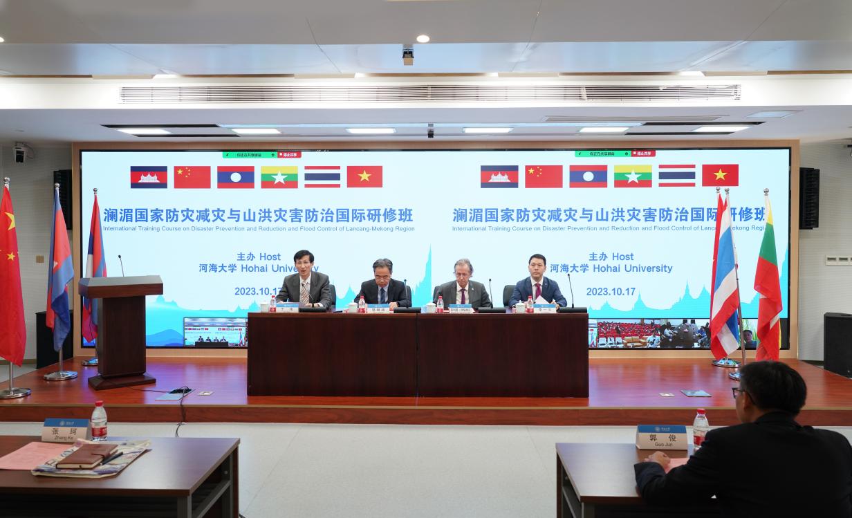 10月17日,由威尼斯432888can登录主页主办的澜湄国家防灾减灾与山洪灾害防治国际研修班顺利开班。威尼斯432888can登录主页党委副书记郭继超、国际水利与环境工程学会主席菲利普·顾伯维尔、威尼斯432888can登录主页国际合作处处长李一平、威尼斯432888can登录主页长江保护与绿色发展研究院副院长张珂、威尼斯432888can登录主页远程与继续教育学院副院长于伟出席线下开班仪式,泰国马哈沙拉堪大学校长巴育·席威莱出席线上开班仪式并致辞。